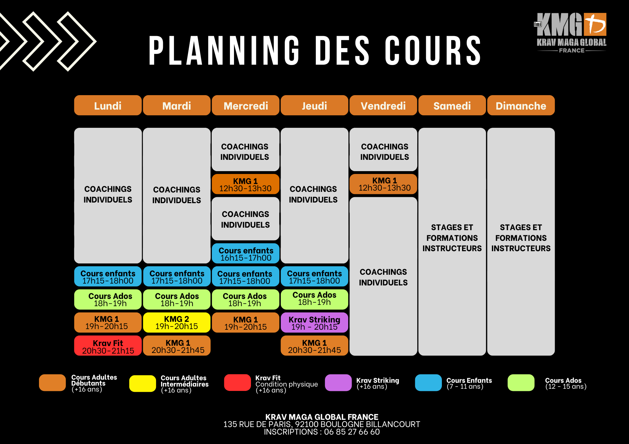Une salle 100% dédiée à la pratique du krav maga (à partir de 7 ans) à Boulogne-Billancourt, au pied de la ligne 10 du métro